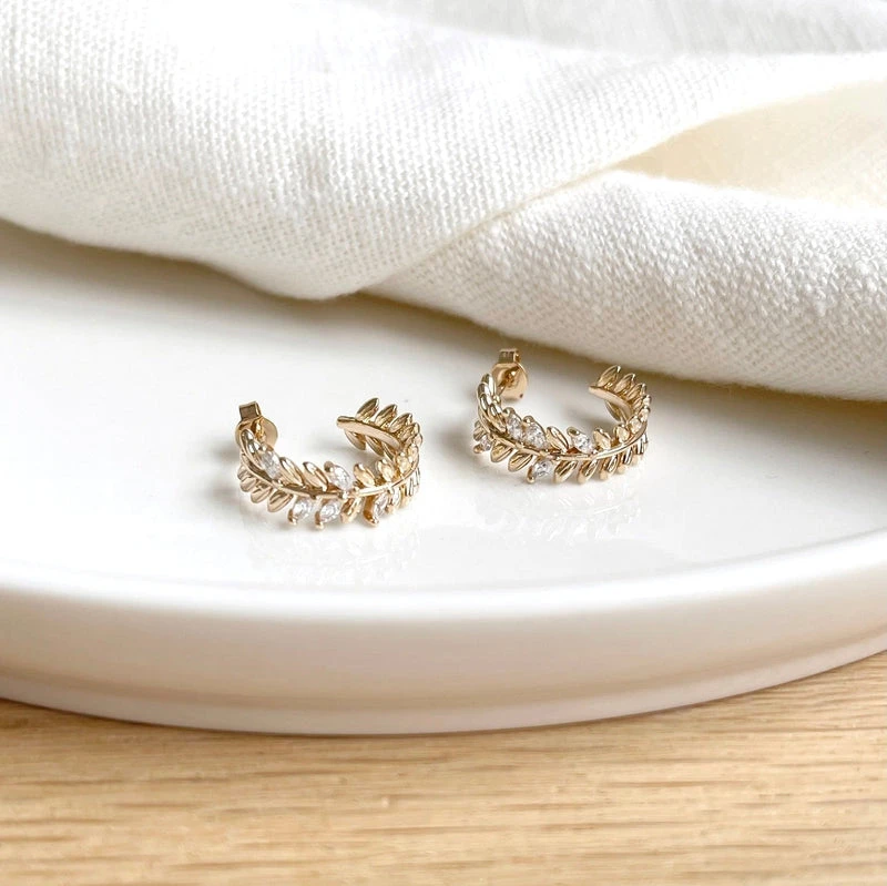 - Créoles à motif feuilles de laurier serties de quelques oxydes de zirconium