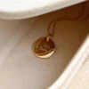 - Composé de perles d’eau douce sur une moitié, d’une maille rectangulaire sur la seconde moitié, liées au centre par un anneau lisse doré (Diamètre 1cm)
