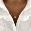 - Médaille lisse (diamètre : 1,5cm) montée sur une chaîne à mailles rectangulaires