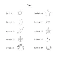- Possibilité de graver une phrase, un prénom, un mot, une date, un symbole (coeur, double coeur, lune, étoile, petite fleur, trèfle, croix, symbole signe astrologique…)