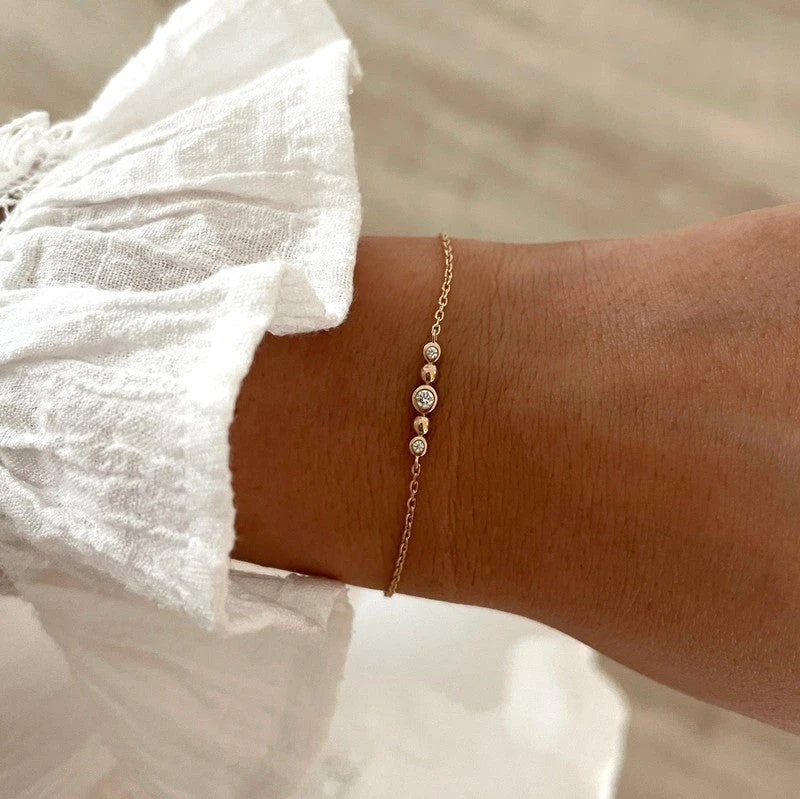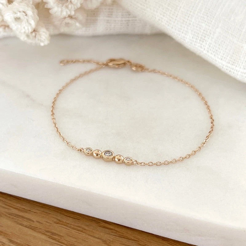 - Serti de 3 oxydes de zirconium et 2 boules dorées