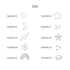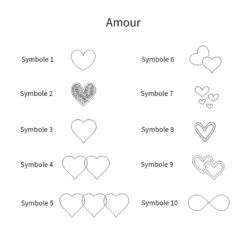 - Possibilité de graver une phrase, un prénom, un mot, une date, un symbole (coeur, double coeur, lune, étoile, petite fleur, trèfle, croix, symbole signe astrologique…)