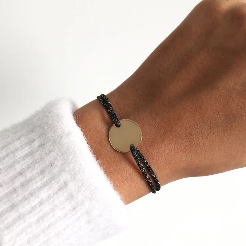 - Bracelet en plaqué or 3 microns et coton noir avec fil doré