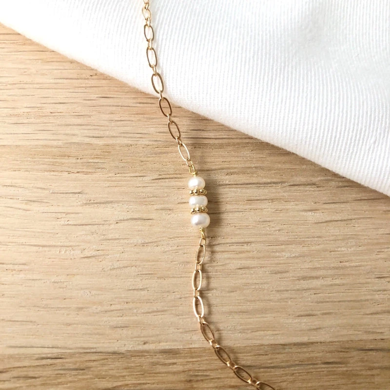 - Composé de perles d’eau douce, de petites fleurs et d’une chaîne à petits maillons ovales