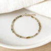 - Composé de petites perles en rhodonite, dorées et de perles d’eau douce