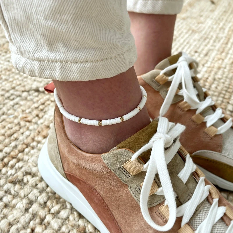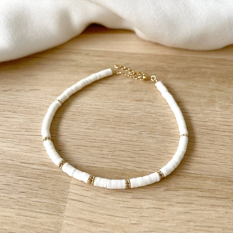 - En perles de heishi blanches & composants en plaqué or 3 microns