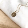 - Médaille lisse (diamètre : 1,5cm) montée sur une chaîne fine