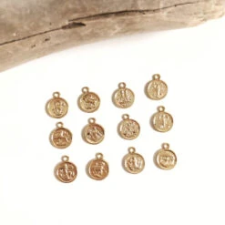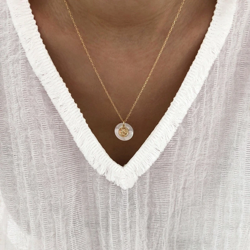 - Pendentif nacre 1,5cm et petite médaille signe astrologique 0,8cm au choix montés sur une chaîne fine