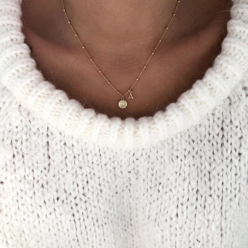 - Chaîne fine avec petites boules composée au choix : De pendentif(s) signe(s) astrologique(s) (8mm) et/ou de lettre(s) (5mm) au choix