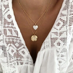 - Pendentif coeur nacre (diamètre : 1,5cm) monté sur une chaîne boules