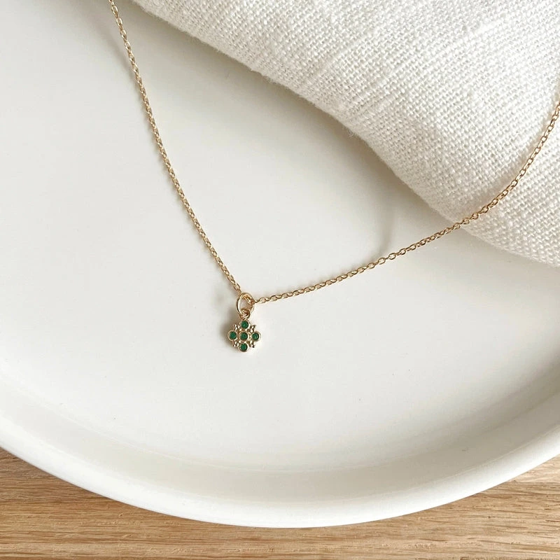 - Petit pendentif orné d’oxydes de zirconium verts (diamètre : 0,7cm) monté sur une chaîne fine
