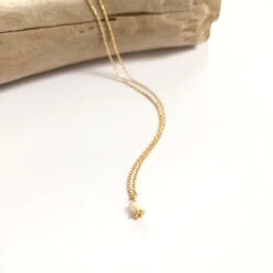 - Composé d’un petit pendentif perle d’eau douce + charm en forme de fleur plaqué or, monté sur une chaîne fine