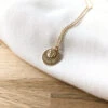 - Médaille martelée (diamètre : 1,5cm) composée d’une perle d’eau douce & montée sur une chaîne fine composée de petites boules