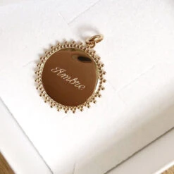 - Médaille avec contour joliment travaillé motif soleil (diamètre : 2cm)